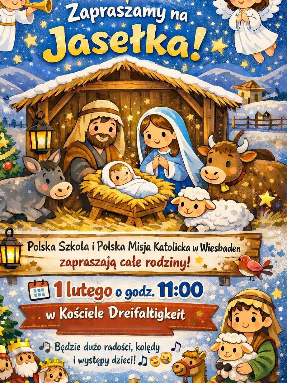 Z wielką radością zapraszamy na Jasełka, przygotowane przez dzieci z Polskiej Szkoły przy Polskiej Misji Katolickiej w Wiesbaden 💫