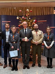Harcerze w sposób uroczysty przekazali Betlejemskie Światło Pokoju Panu Konsulowi Generalnemu RP w Kolonii panu Markowi Głuszko i jego bliskim współpracownikom.